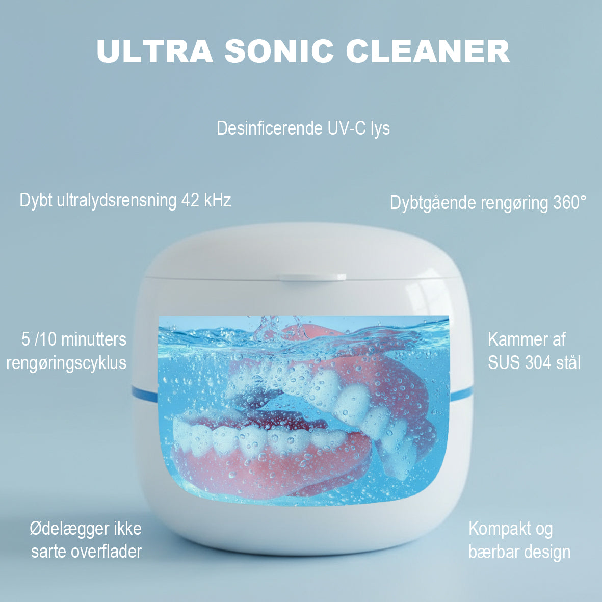 Vores Ultra Sonic Cleaner giver dig en helt ny måde at holde tandproteser, bøjler og andre små genstande rene og hygiejniske. Med kombinationen af ultralyd og UV-lys fjernes snavs, plak og bakterier på få minutter – uden besvær.